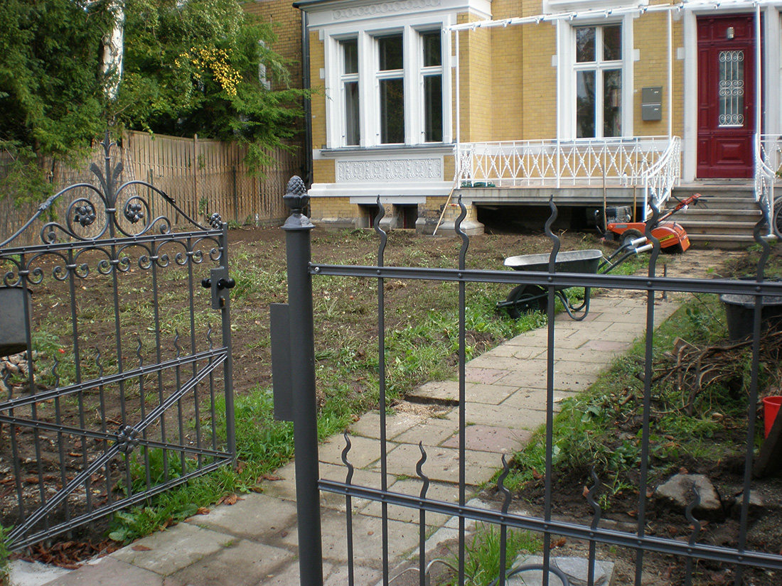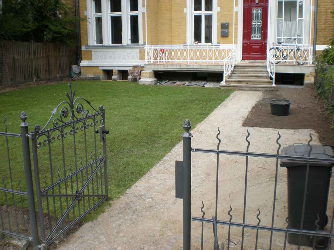 Unter Berücksichtigung des Denkmalschutzes haben wir den Vorgarten einer Villa nach Kundenwunsch neu hergerichtet. Zu den ausgeführten Arbeiten gehörten u.a.: